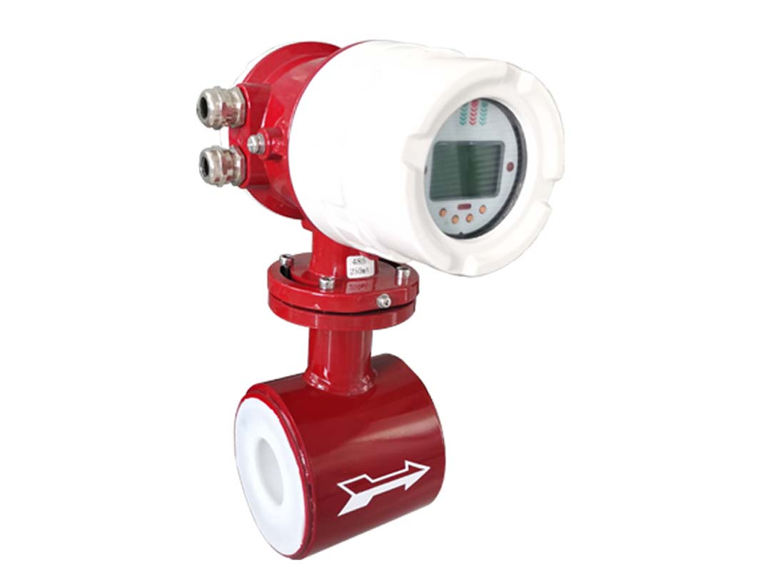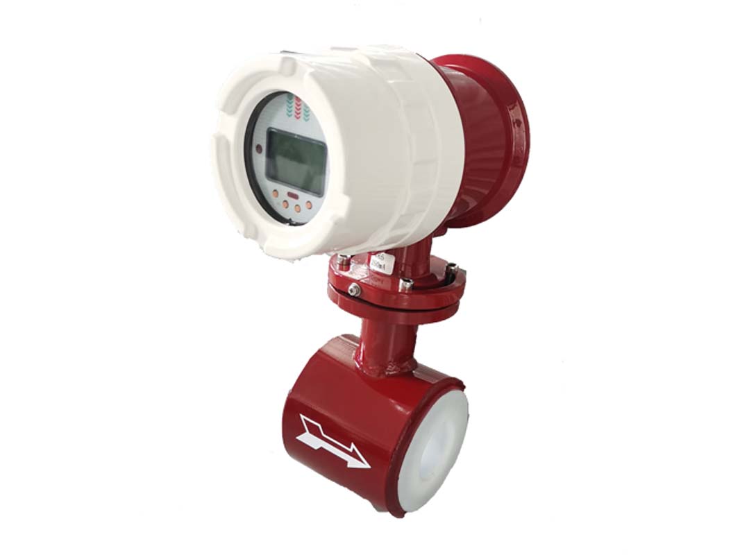 Electromagnetic flowmeter application electromagnetic induction principle, according to the conductive fluid through the external magnetic field induced electromotive force to measure the flow of conductive fluid an instrument. The structure is mainly composed of magnetic circuit system, measuring conduit, electrode, casing, lining and converter. The measurement is not affected by fluid density, viscosity, temperature, pressure and conductivity changes; No blocking flow parts, no pressure loss, lower requirements for straight pipe section: special adaptability to slurry measurement.